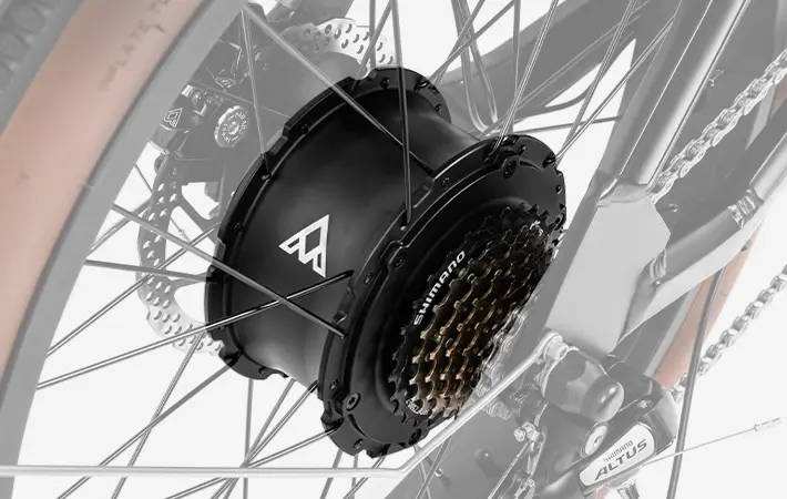 The ebikes for adults Addmotor E‑325 is equipped with a 750W rear‑drive brushless hub motor delivering up to 1,400W of peak output and 90Nm of torque. This high‑torque drivetrain is engineered for strong low‑speed traction, stable acceleration, and reliable performance under heavy load. Paired with a 48V electrical system and a 25A controller, the motor provides enhanced surge power for confident starts, hill climbing, and sustained operation in demanding cargo scenarios. The rear‑drive configuration improves traction and directional stability, while optimized thermal management ensures consistent power delivery during use. This motor architecture enables smooth, responsive torque control and efficient energy utilization across urban, family, and utility‑cargo environments—qualities expected from a modern heavy‑duty electric bike designed for real‑world load handling.